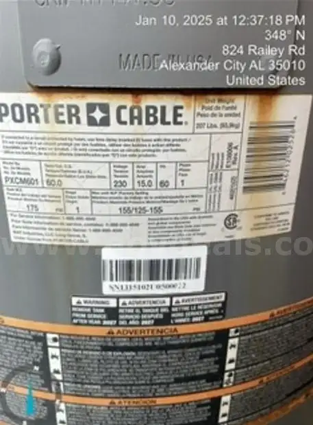 Item:Porter Cable 3.7hp 60 gallon Compressor-Not operational