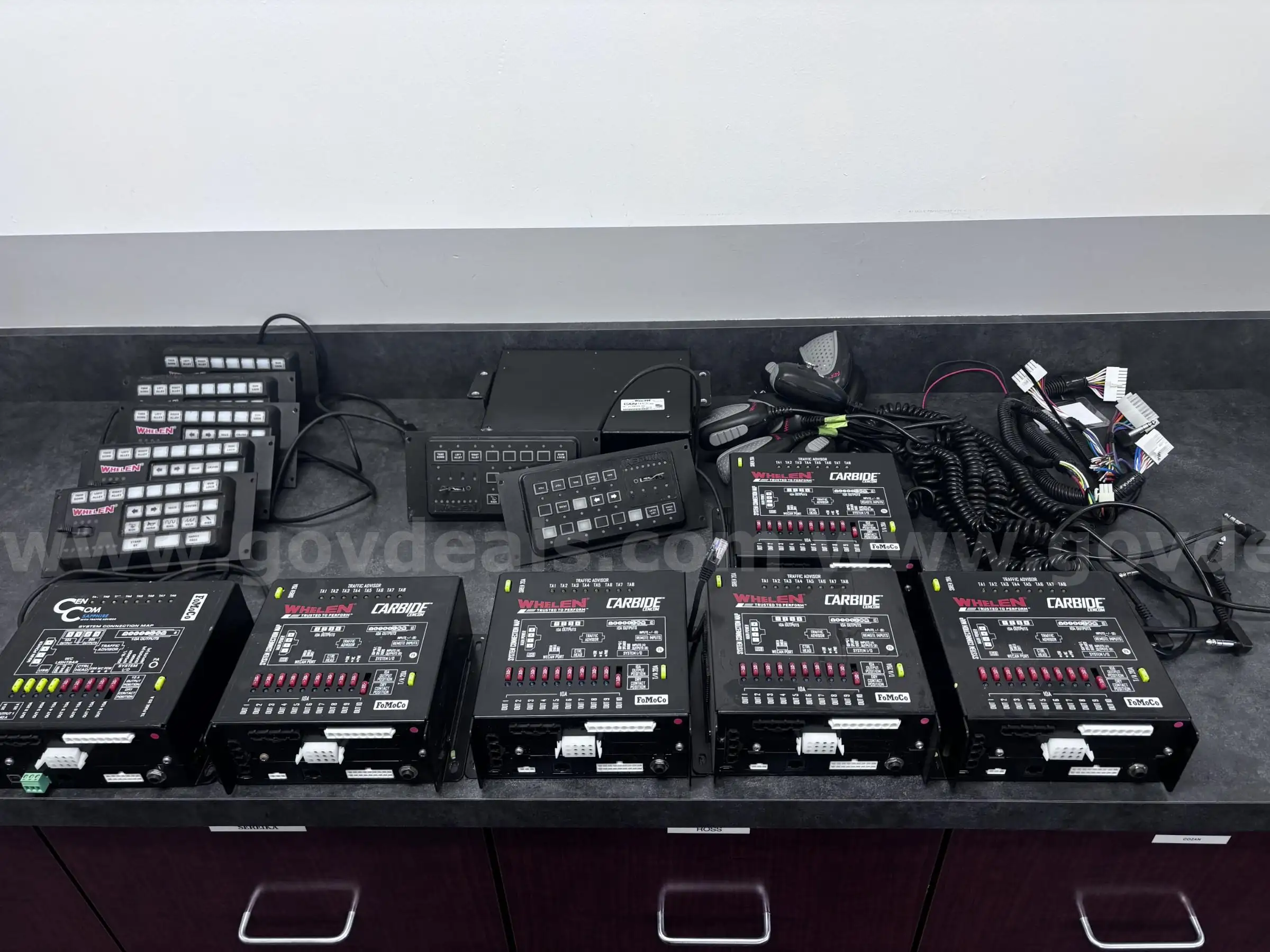 Item:Lot of Whelen and CenCom light controllers and wiring harnesses