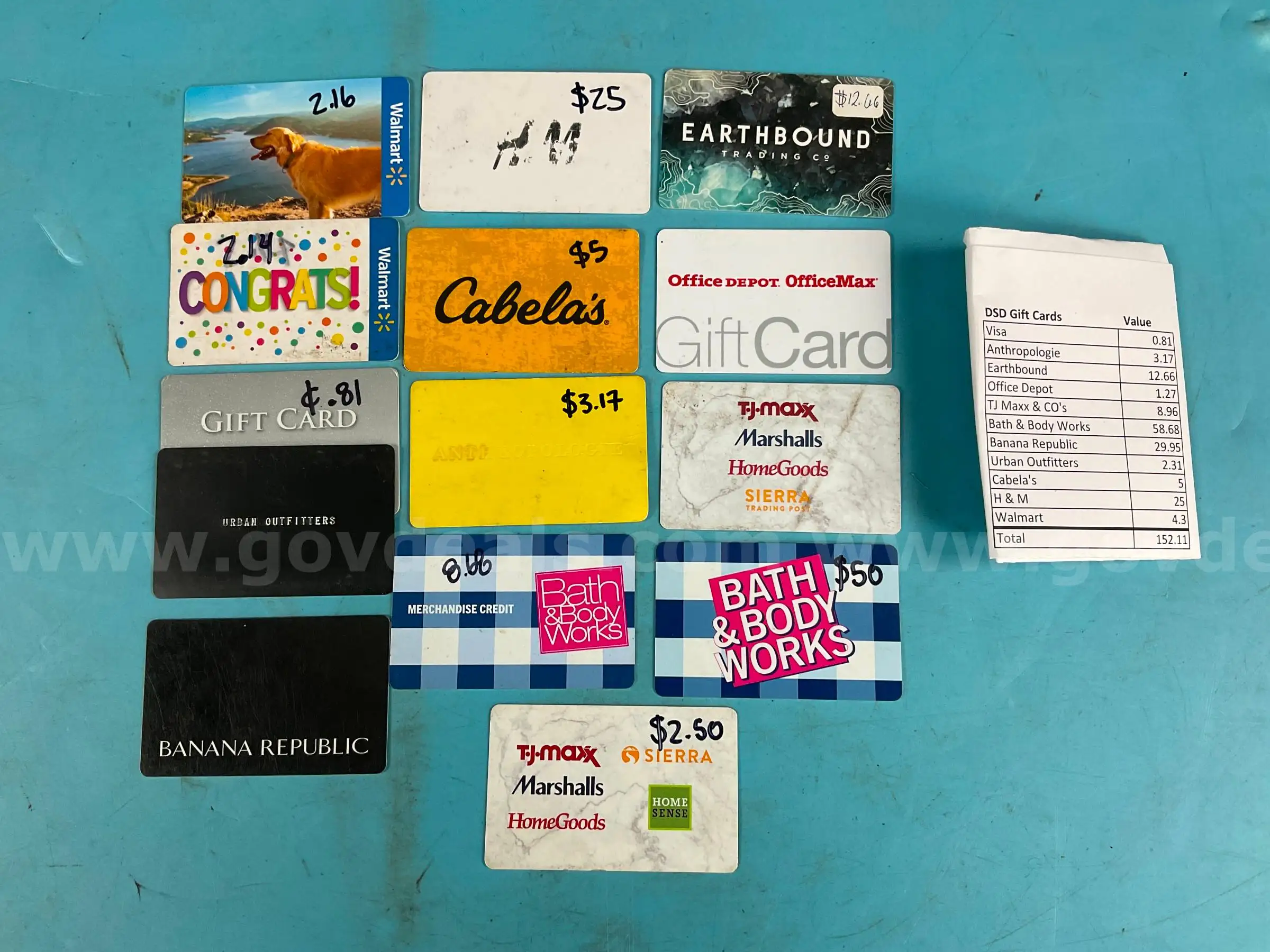 Item:Lot of Misc Gift Cards $152.11 Total Balance