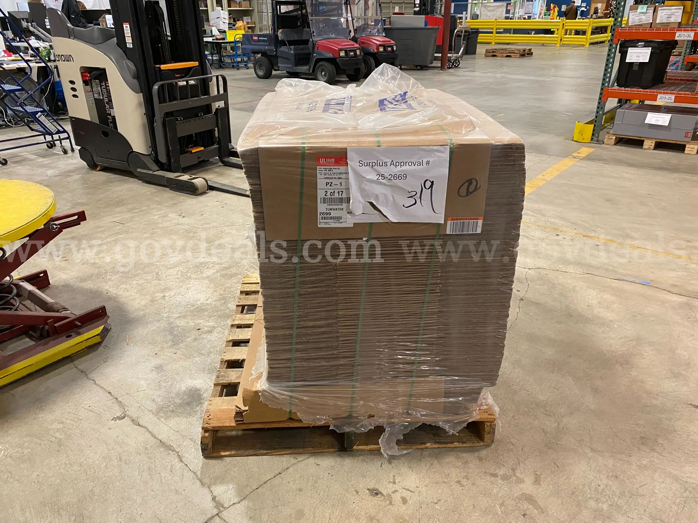 Item:Lot 4 - Pallet of Cardboard Boxes - Approx 120 Count (ID #43981) (H05-2R) (25-2669-8) 300