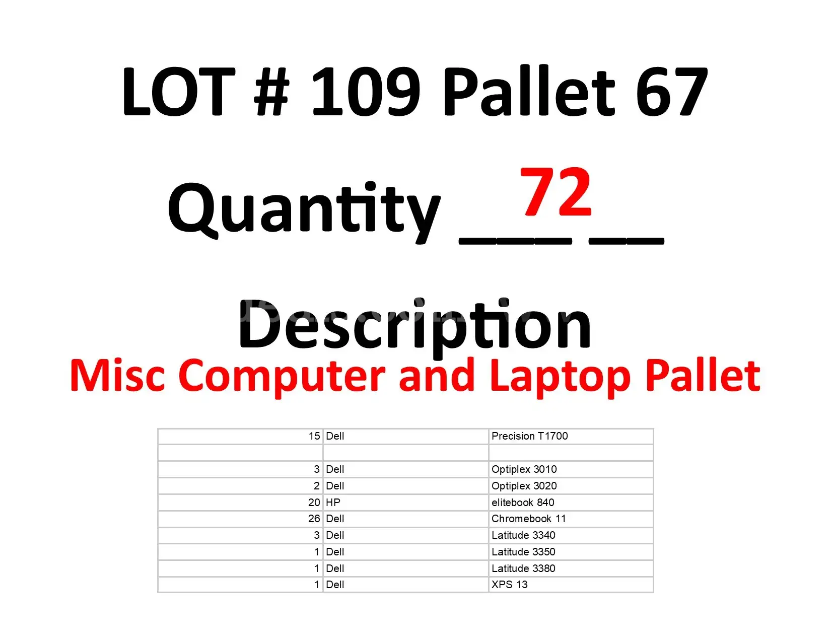 Item:Lot 109 - Pallet 67 - Misc Computer and Laptop Pallet - 72ea Total Read Long description