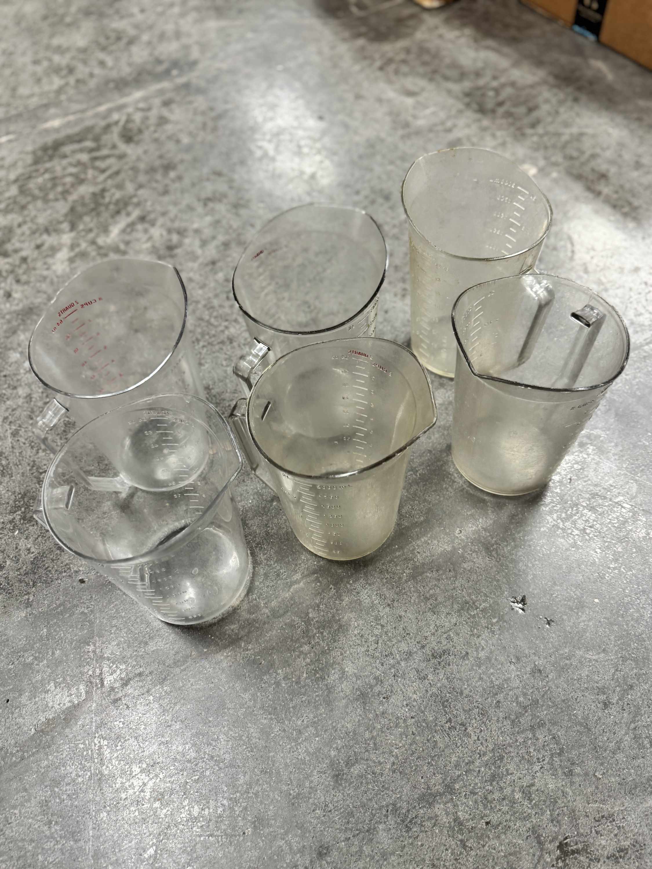 Item:Six 1 Quart Measuring Pitchers